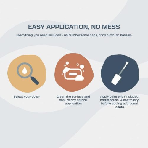 ステップ2: ペイントの塗布 タッチアップペイントをヒビや欠け、錆びた部分に薄く塗布します。付属のペイントブラシを使って均一に広げ、表面が滑らかになるように調整します。(二度塗りは一度、乾燥させてから)