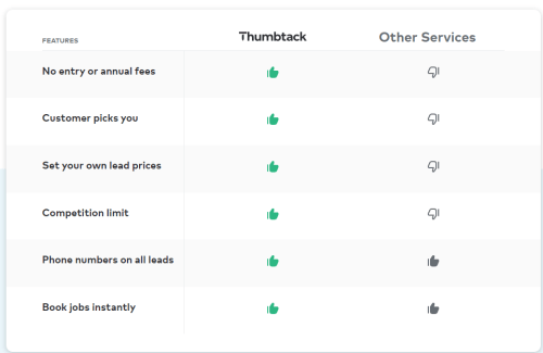 登録業者は、サービスの詳細、料金、過去の顧客のレビューなどが掲載されたプロフィールを提供しているので、顧客は自分のニーズに合う業者をThumbtackを使って見つけることができます。