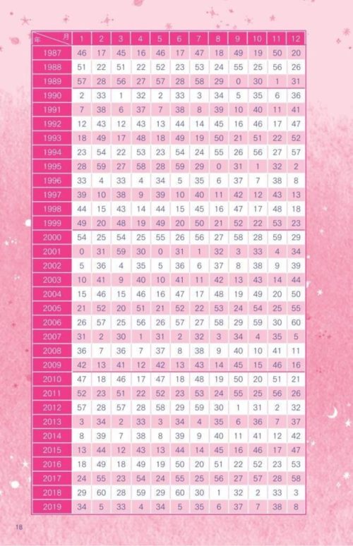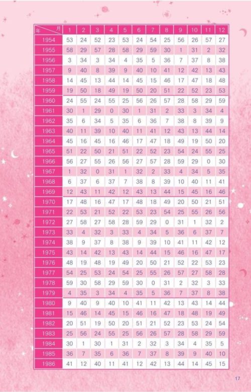 宿命数を割り出すためには、あなたの生年月日を使用します。ネットで探したけれど、今のところ自動で割り出してくれないので、以下の早見表を見て、ご自身で計算してくださいね 笑