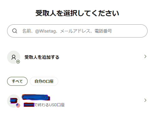 (WISEを利用している第三者に送金する場合は検索からで可)