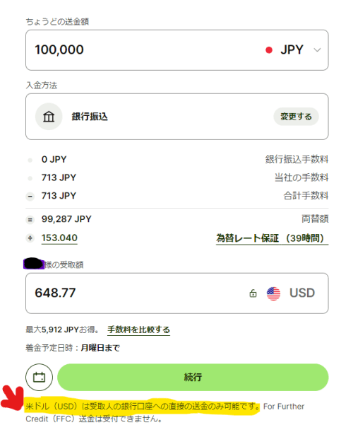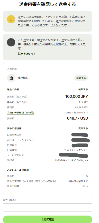 送金手続きの詳細