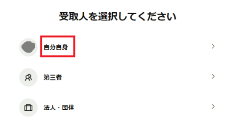 自分に送りたい場合は自分自身、他の場合は他を選び、クリックして進みます。